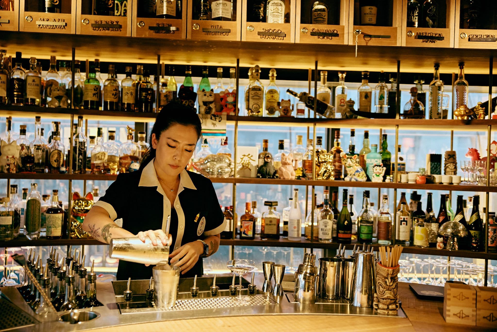 Facing a side street with a welcoming atmosphere, this bar offers an extensive selection of Japanese whiskies. An English menu makes ordering easy. For a first cocktail, try the Green Tea Negroni, elegantly finished with gold leaf.