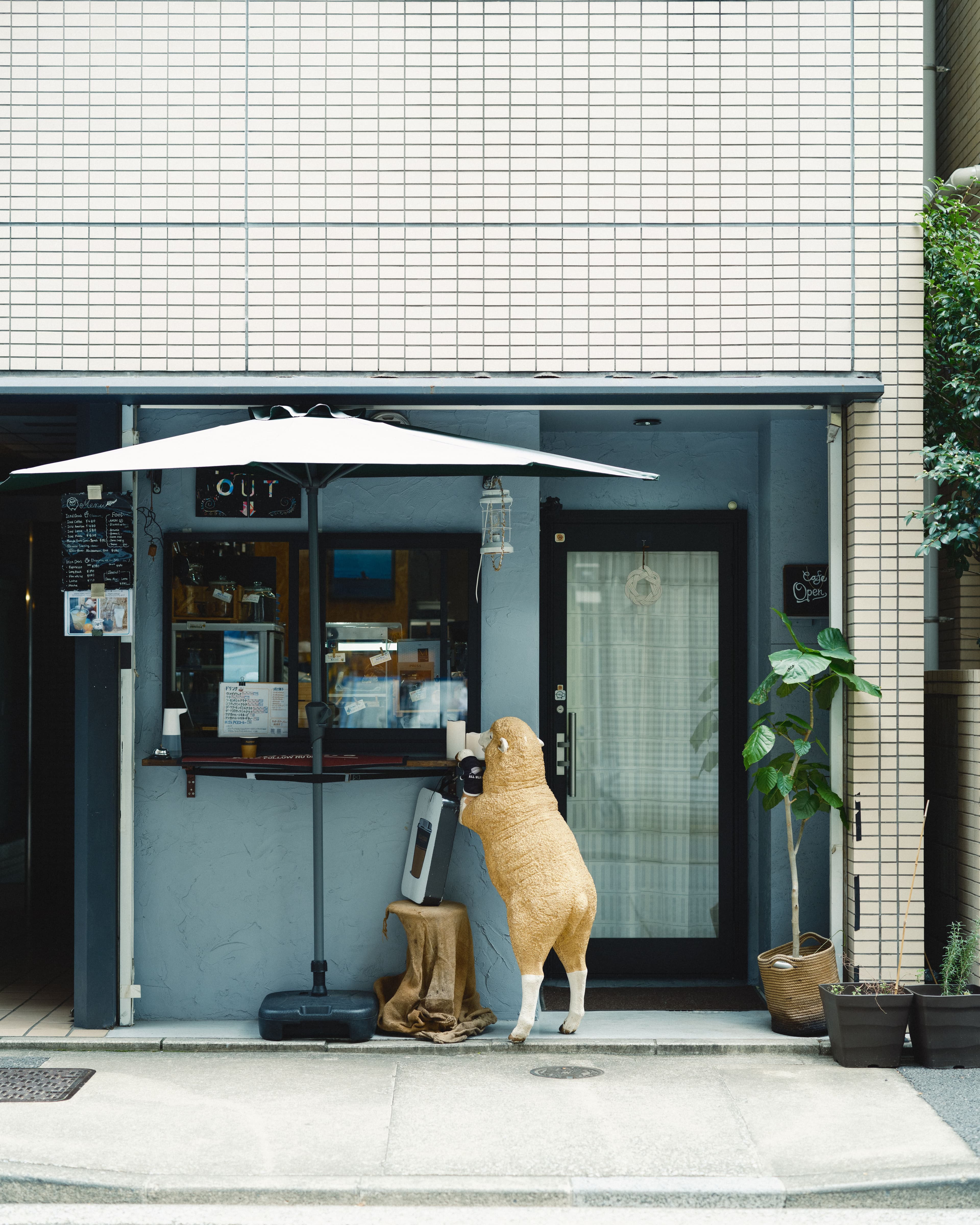 A sheep stands guard here, where you can try lamb taco rice and a unique dates and almond latte.