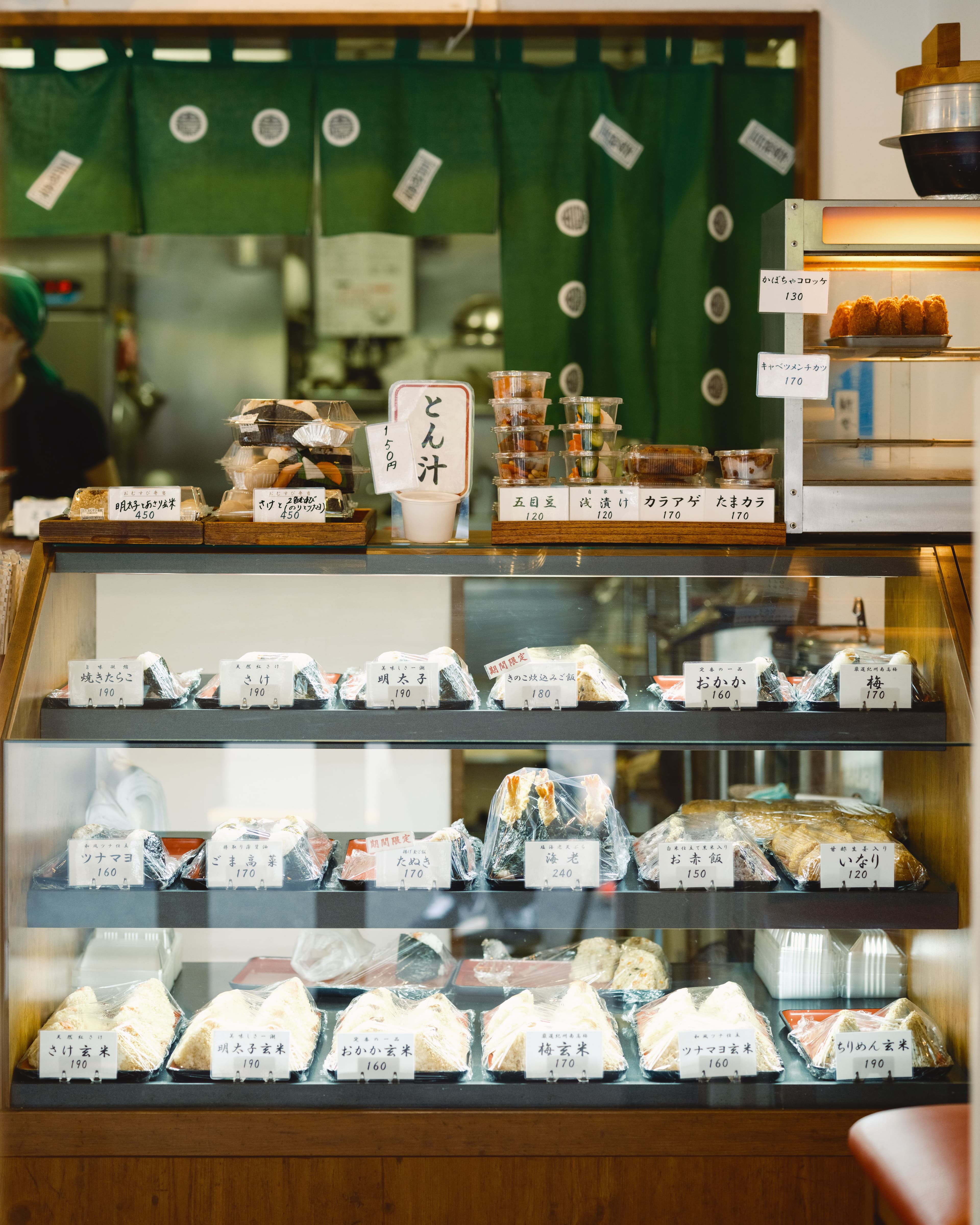 It is a tiny shop with a wide selection of onigiri (rice balls), with brown rice as an option. Simple, tasty, ready to make your belly happy.